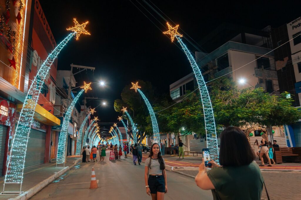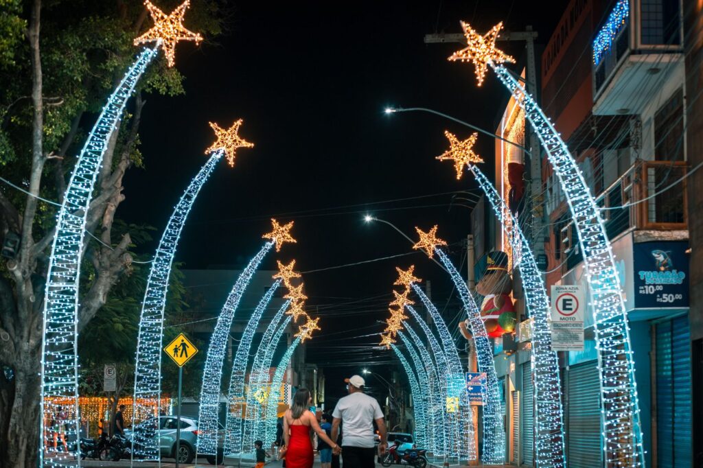 A decoração deste ano inclui túneis de luz, estruturas temáticas, árvores iluminadas e ambientações especiais distribuídas pela área central. Segundo a organização, o objetivo é valorizar o espaço público e estimular o fluxo de visitantes durante o período natalino.