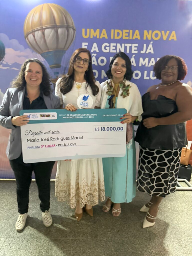 O projeto “Esperançar”, de iniciativa da Delegada Maria José Maciel, titular do Núcleo Especializado de Atendimento à Mulher (NEAM), sediado em Irecê, ocupou a terceira colocação entre os 10 projetos classificados, de um total de 198 concorrentes ao Prêmio Boas Práticas do Serviço Público, realizado pelo governo do estado. A cerimônia de premiação ocorreu no último dia 28, no auditório Zezéu Ribeiro no SEAP/Centro Administrativo da Bahia, em Salvador.