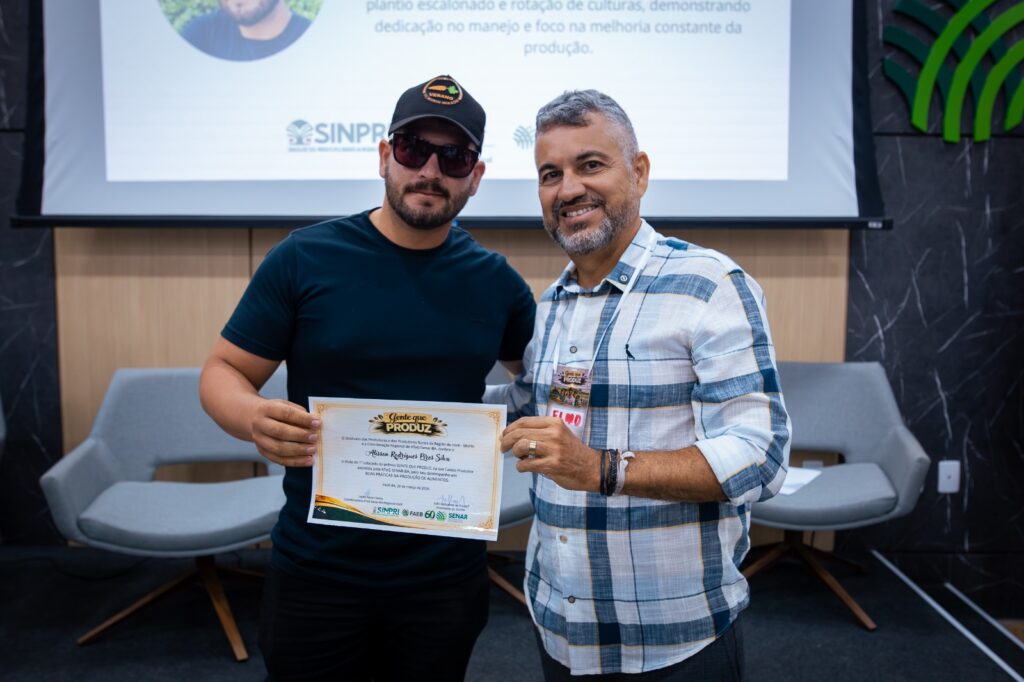 Ao final, ocorreu um dos momentos mais aguardados pelos participantes, com a entrega de prêmios aos produtores que obtiveram melhor desempenho no uso da assistência técnica gerencial do SENAR. Foram premiados 21 produtores em terceiro lugar, 21 em segundo lugar, conforme seus desempenhos, e 21 produtores que alcançaram a classificação mais elevada, considerando a aplicação de boas práticas na produção de alimentos no território de Irecê.